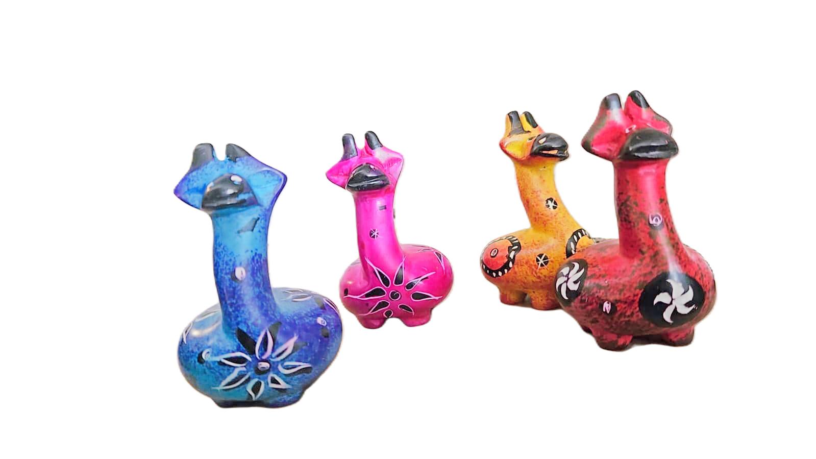 Bring a splash of vibrant joy to any space with these delightful multi-coloured sitting giraffes!